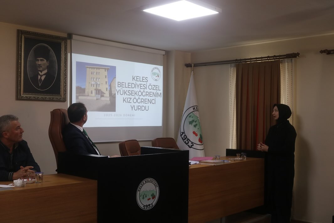 Toplantı sonrası Keles Belediyesi Özel Yükseköğrenim Kız Öğrenci Yurdu Müdürlüğü tarafından yapılan çalışmalar hakkında meclis üyelerimizi bilgilendirdik.